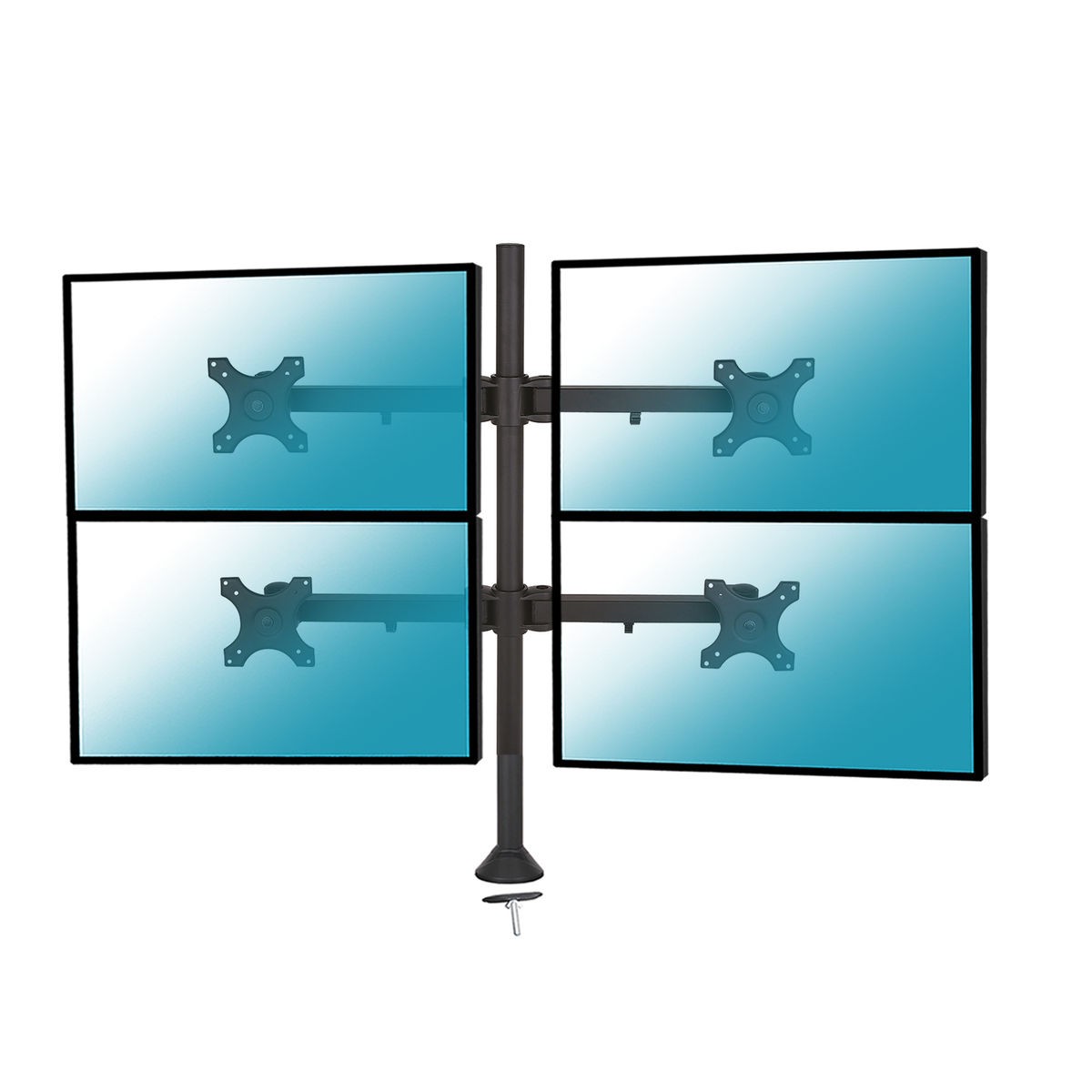 Support de bureau pour 4 écrans PC 13´´-24´´, Compatibilité Vesa 75x75 et 100x100, Orientable- inclinable- pivotant et réglable en hauteur,